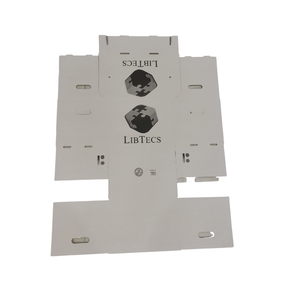 Las cajas están diseñadas con lámina plástica corrugada, también conocida como corrugado plástico, cartón plástico, plancha de plástico, hoja plástica con flauta, polipropileno celular, plasticarton, hojas de doble pared o twin wall sheets, corruplast o coroplast, entre otros.